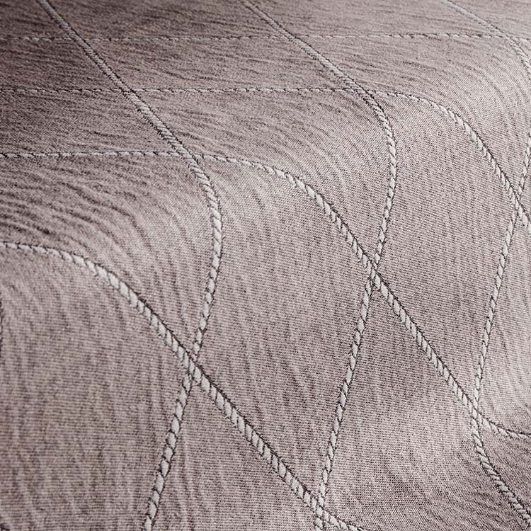 イタリアの建築家/インテリアデザイナーであるGiuliano Andrea dell'Uvaとコラボレーションした張地のCapsule Collection "Dreaming of Capri" 海からインスピレーションを得ており、経糸と緯糸の交錯が特徴的な大きなひし形模様のジャカード生地。立体的な効果を出すことでひし形の白い輪郭がロープのように見えるデザインです。