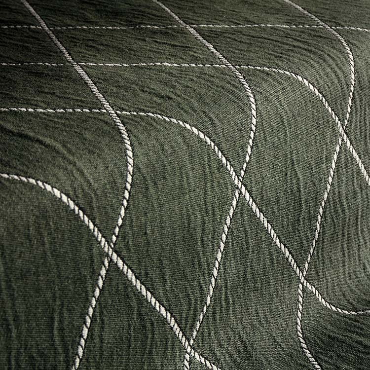 イタリアの建築家/インテリアデザイナーであるGiuliano Andrea dell'Uvaとコラボレーションした張地のCapsule Collection "Dreaming of Capri" 海からインスピレーションを得ており、経糸と緯糸の交錯が特徴的な大きなひし形模様のジャカード生地。立体的な効果を出すことでひし形の白い輪郭がロープのように見えるデザインです。