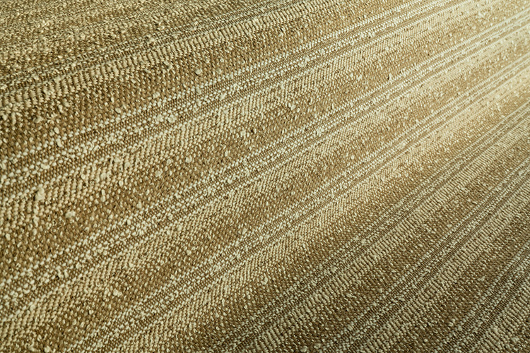 ソフトな手触りでありながら、ざらつきのあるテクスチャーと十分な強度をもった張地です。ボリューム感のある様々な色の糸をストライプ状に組み合わせており、 なかでも 2 色のブークレ糸が 手織りの特徴を出しています。