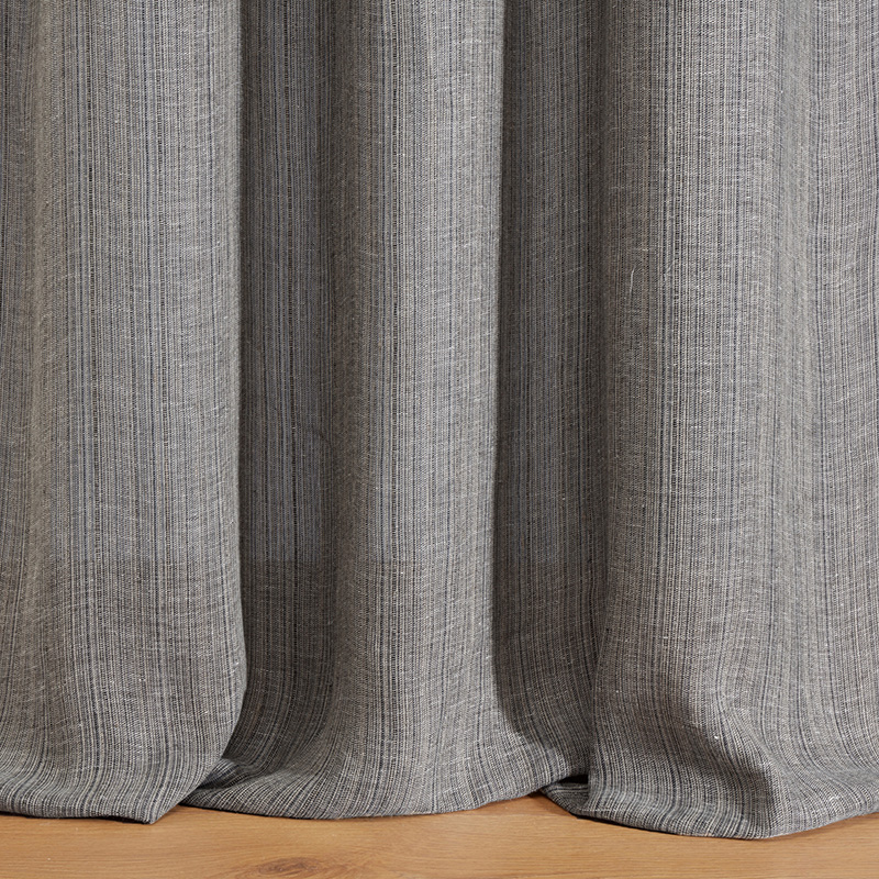 洗練された織り方で生糸を思わせる構造的な縦縞模様を描いたエレガントなレース生地。1本の経糸に数本のヘンプ糸を使用し、ざらりとした質感と透明感と密度の融合を実現しています。リヨセルとの混紡により柔らかなドレープ感が生まれています。