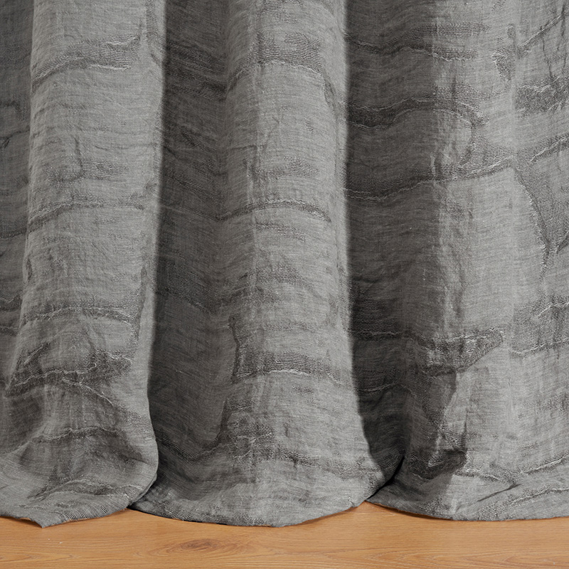イタリアやスペインの石壁をモチーフにしたヘンプ100%のレース生地。長い浮き糸とアジュール織りの技法により、さまざまな透明度が生まれます。生地は先染めされており、わずかに多色の構造になっています。柔らかくもドライな手触りで、柔らかく流れるようなドレープ感があります。ヘンプ糸は太さにバリエーションがあるのが特徴です。