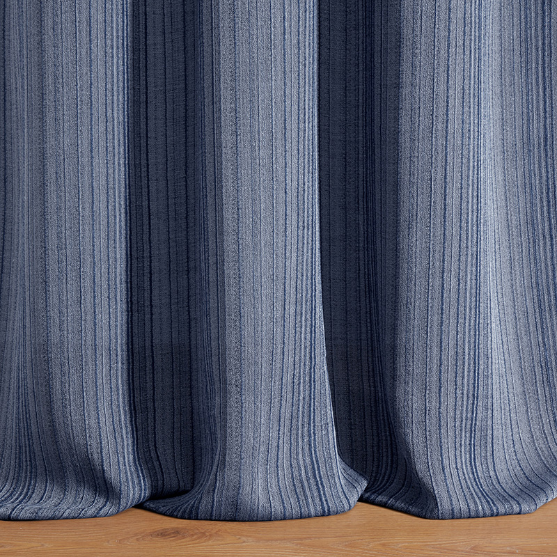 - 使用済みの難燃糸をリサイクルした糸を100%使用した先染めのジャカード生地。織り方によって細いストライプと色のグラデーションが生まれ、繊細な構造と柔らかい感触を生み出します。