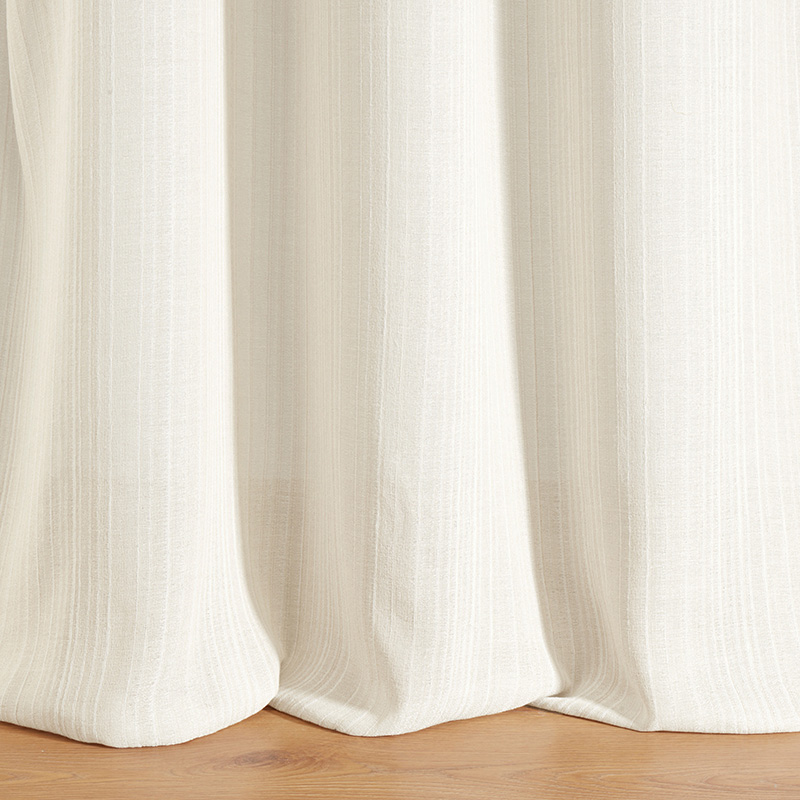 - 使用済みの難燃糸をリサイクルした糸を100%使用した先染めのジャカード生地。織り方によって細いストライプと色のグラデーションが生まれ、繊細な構造と柔らかい感触を生み出します。