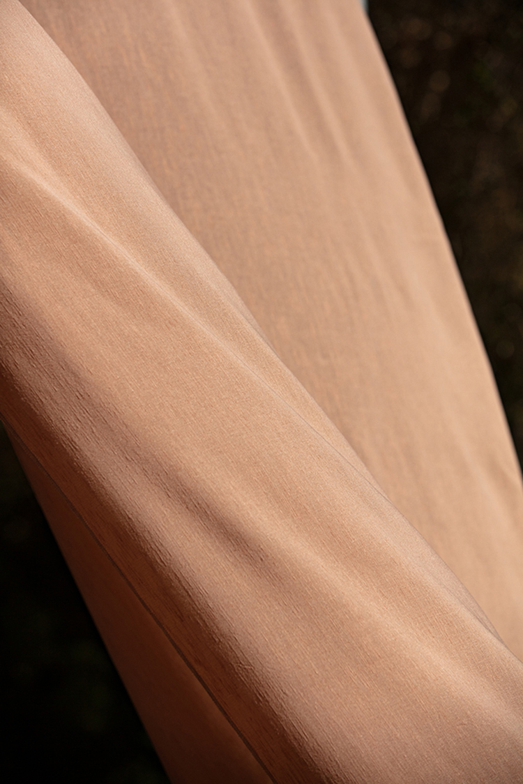 - ざらっとしたマットな質感のレース生地。ペットボトルから作られた再生ポリエステル糸を100%使用しています。コントラクトにもプライベート空間にも使用できる防炎レースです。