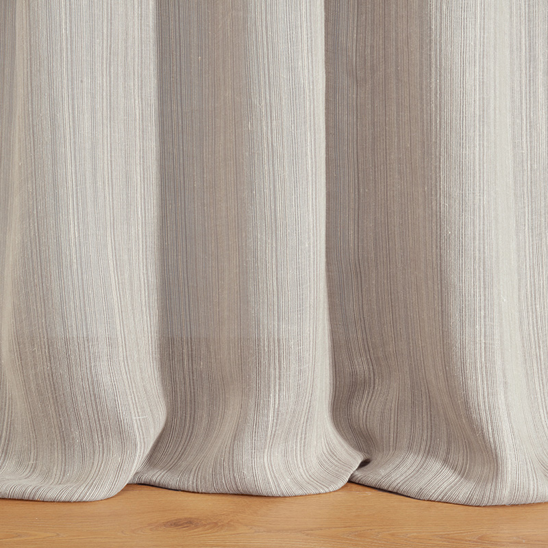洗練された織り方で生糸を思わせる構造的な縦縞模様を描いたエレガントなレース生地。1本の経糸に数本のヘンプ糸を使用し、ざらりとした質感と透明感と密度の融合を実現しています。リヨセルとの混紡により柔らかなドレープ感が生まれています。