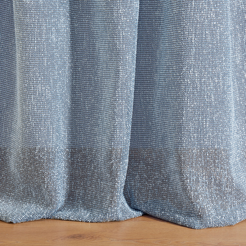 - ブークレー糸を使用することで表面に粗い凹凸を出した先染め絡み織りの広幅生地。ソフトでボリューム感のある生地は半透明で、流れるようなドレープが特徴です。工場廃棄物からリサイクルされたポリエステルを100%使用し、難燃性に優れています。同じ色調で異なる色の糸を使用することで生き生きとした深みのある色合いを実現しています。